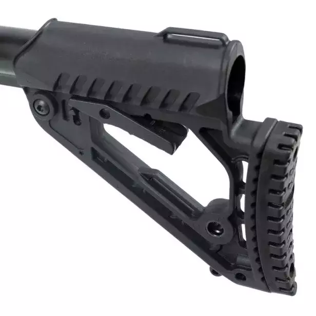 Coronha ajustável que é no estilo dos rifles, permitindo 5 níveis de ajuste. Seu tamanho pode ir de 77 cm até 82 cm conforme a sua preferência no ajuste.
