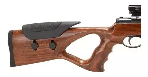 Sua coronha tem estilo vazado, com pegada thumbhole. Essa pegada te dá encaixe perfeito da mão ao disparar, fazendo com que seus tiros sejam muito mais precisos e eficazes. O conforto faz toda a diferença na prática do Tiro Esportivo.
