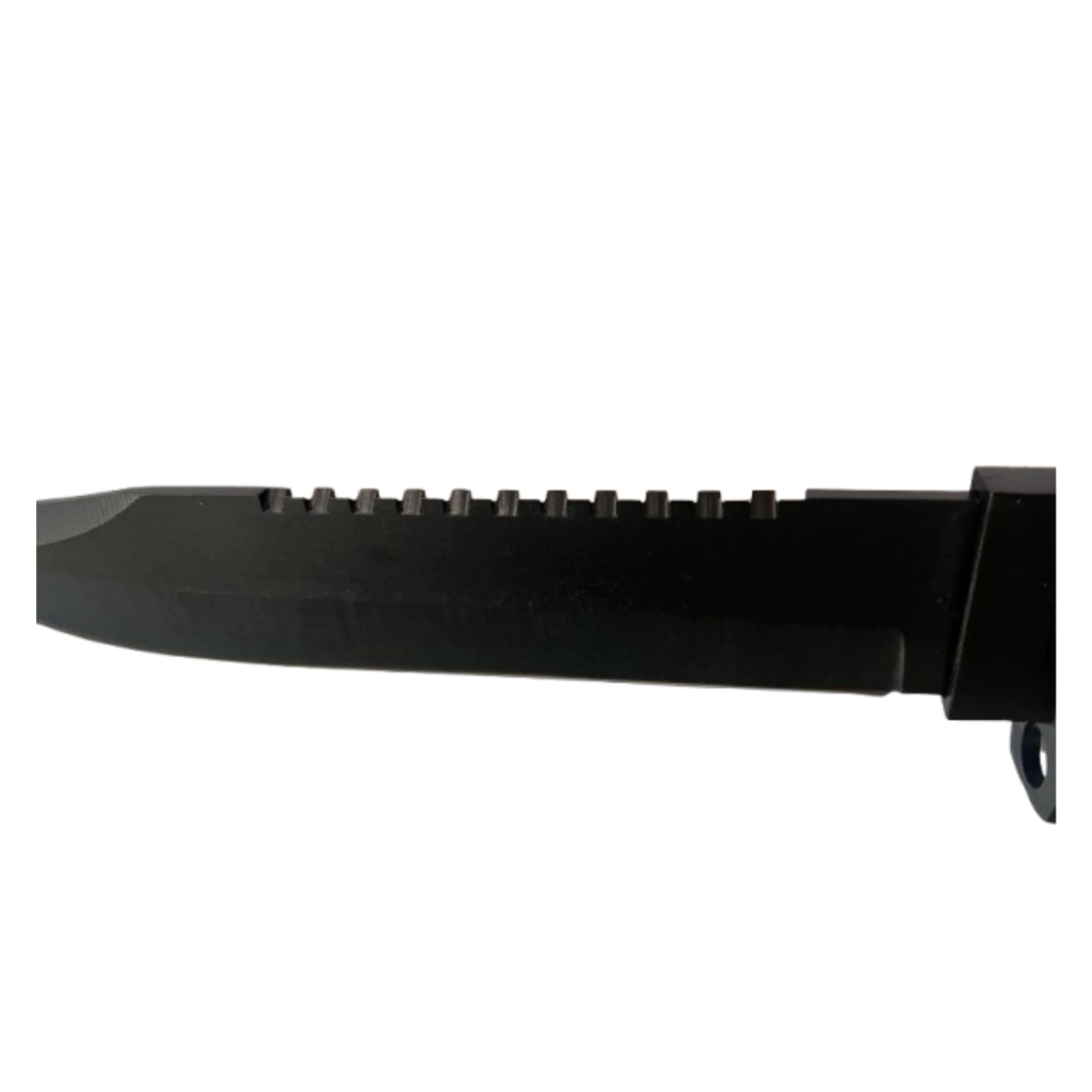 A Faca Tática com Cabo Antiderrapante foi projetada para oferecer máxima aderência, precisão e resistência em diversas situações, desde camping e sobrevivência até uso tático. Seu cabo circular possui 5 tiras antiderrapantes e 4 tiras lisas, garantindo conforto e firmeza no manuseio. A lâmina multifuncional conta com dentes serrilhados em um lado e uma serra no outro, tornando-a uma ferramenta essencial para diferentes tipos de corte.